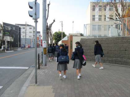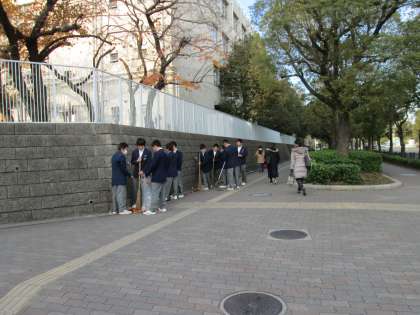 今朝は、ラグビー部が正門の落葉を集めてくれました。
