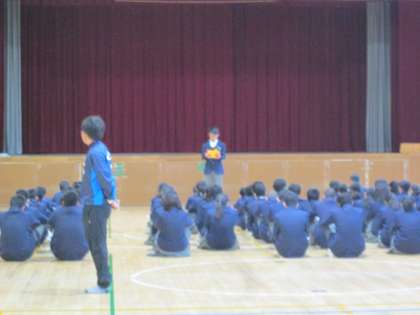 今朝は、学級代表から、部活動に欠ける熱い思いが発表されました。