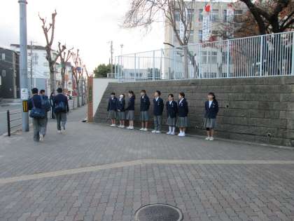 生徒会役員・学級代表のあいさつ運動も、極寒の中、元気に声を出しています。