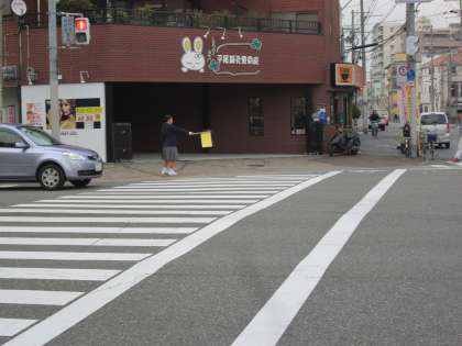 雨がパラつきましたが、生徒会役員は交通安全指導を。