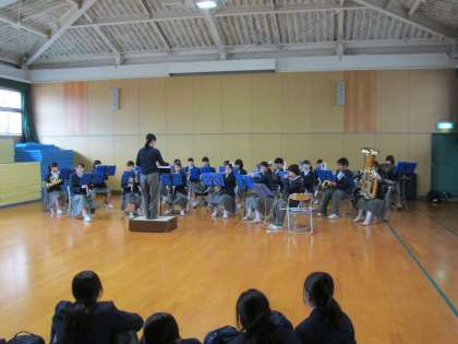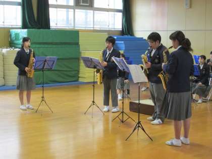 終業式のあと、吹奏楽部による「クリスマスコンサート」が行われました。