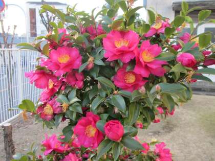 「テスト、ガンバレ!」太陽の輝きも、寒椿も応援しています。