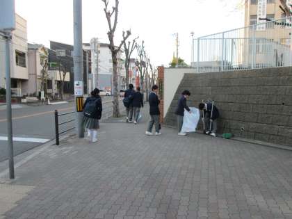 今朝は、バスケットボール部が清掃活動を行ってくれました。