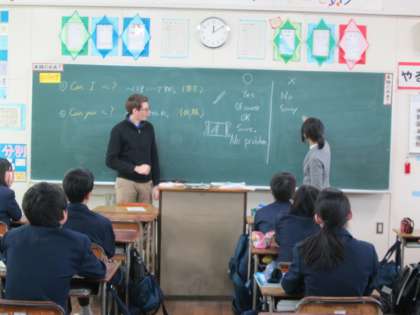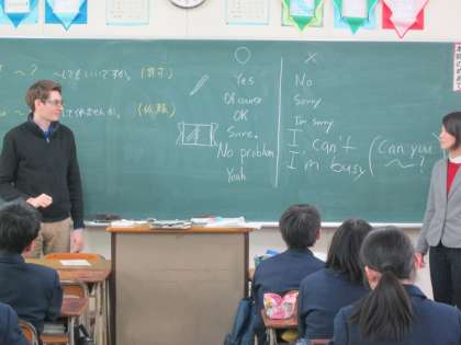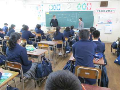 お二人の先生の英会話は流暢で、英語の質問に対して、生徒たちもいろいろと考えをめぐらせています。
