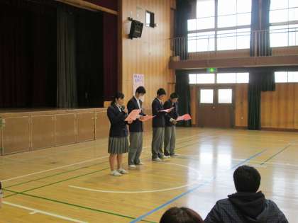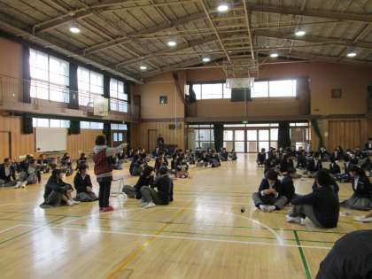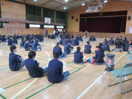 本日の土曜授業。2年生は体育館で「百人一首大会」を行いました。