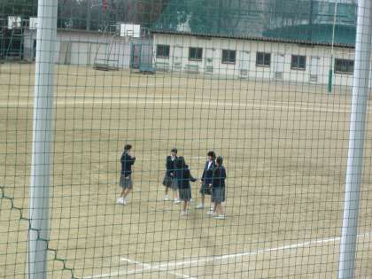 太陽の陽も射さず、風の冷たいグラウンドですが、女子生徒たちが楽しんでいます。