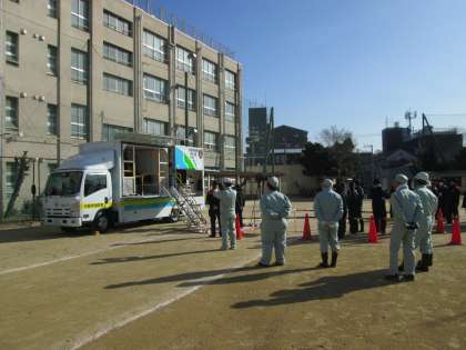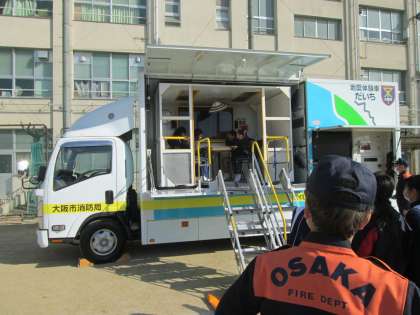今回、大阪市に一台しかない起震車がやってきてくれました。