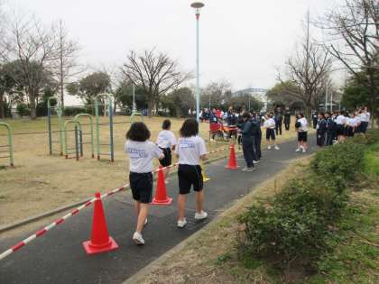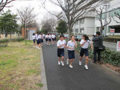 後方の生徒たちを支えてあげているのは、すでにゴールしたランナーたちです。