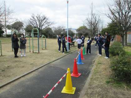 みんな芝生でへたり込みます。しかし、すぐに立ち上がって、他のランナーの応援を!