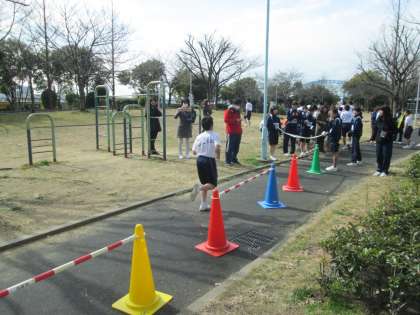 男子だけでなく、女子も一緒になってゴールする選手を、温かい拍手で出迎えます。
