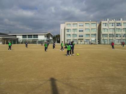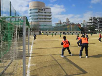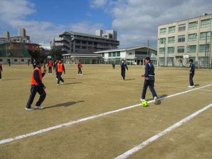 ミニサッカー、フットサル?の授業です。