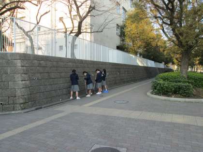 今朝は、吹奏楽部が正門周辺の掃除をしてくれました。