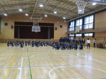 今朝は、「卒業生を送る会」に向けての練習のようです。