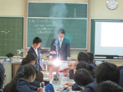 2年生では、理科の授業で、若手の先生が新しい試みにチャレンジしました。