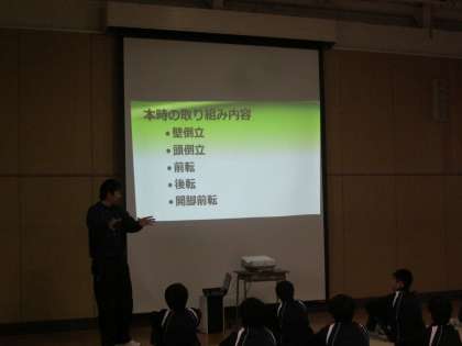 ラジオ体操・補強運動、ストレッチと続いて、本時の内容に。