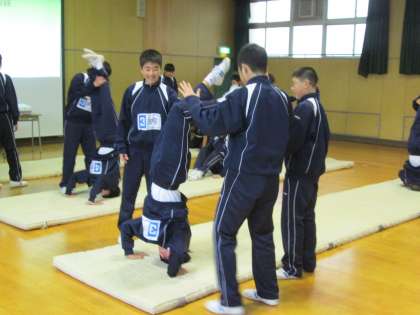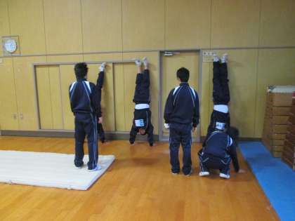 倒立は、壁倒立と頭倒立。単純ですが、頭倒立は意外に難しそうです。