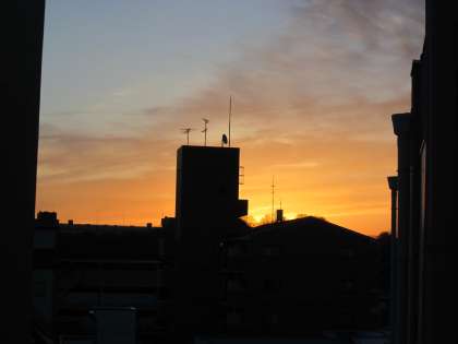 ♪茜に映ゆる 昭和山・・・。そろそろ太陽が顔をのぞかせます。