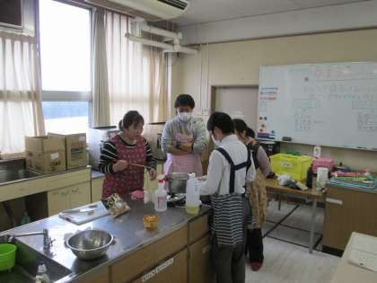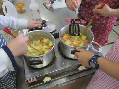 カレー班と、ポテトサラダ班に分かれて頑張っています。