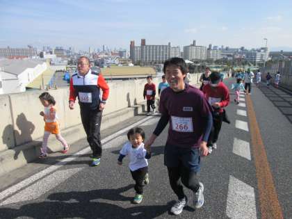 小学校の先生も毎年参加。今回はお子様を連れて走られています。