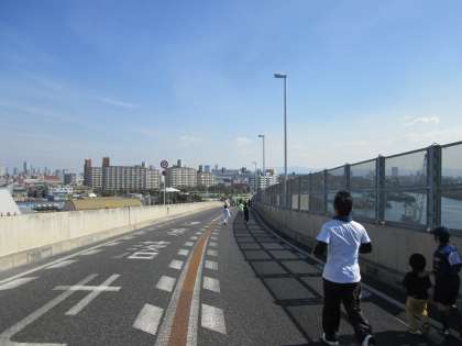 橋の下りは、勢いがついて一気に。