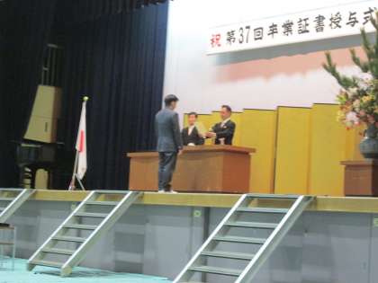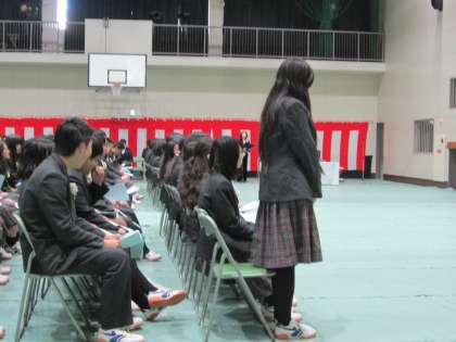卒業証書授与。担任の先生が生徒の名前を読み上げます。