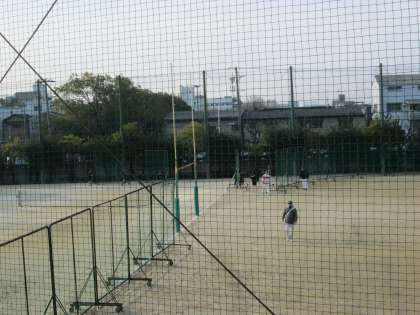 同時に、地域の皆様のソフトボールの練習日でもあり、テニス部の部員たちが防球ネットの移動を手伝っています。