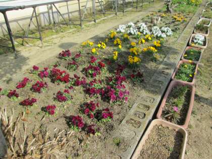 季節の梅の花をはじめ、色とりどりの草花が美しく咲いていました。
