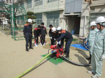 地域防災リーダーの皆様と、大正消防署員の皆様に、丁寧に扱いをご指導いただきました。
