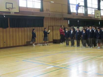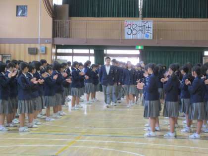本日、6時間目、全校生徒が集い、生徒会主催「卒業生を送る会」を催しました。