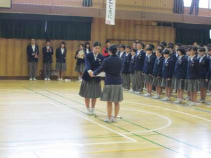 記念品として、卒業式につけていただく「コサージュ」を送り、在校生全員で送別の歌「きずな」をプレゼントしました。
