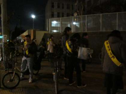 昨夜、PTA実行委員会に引き続き、「北中生を守る会」主催の夜間巡視が行われました。