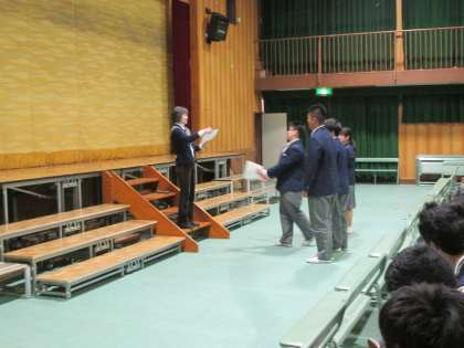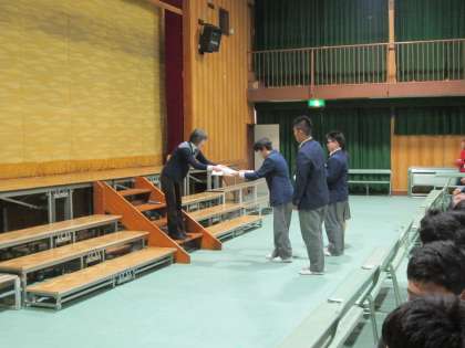 3年間、欠席遅刻ゼロの「皆勤賞」が表彰されました。