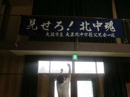 懐かしい「北中魂」の横断幕。ジャンプで、届くか!?