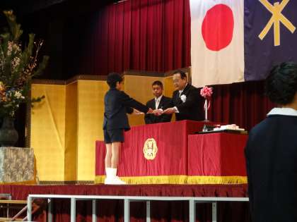 国歌、市歌の斉唱のあとは、卒業証書の授与です。