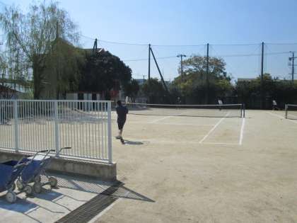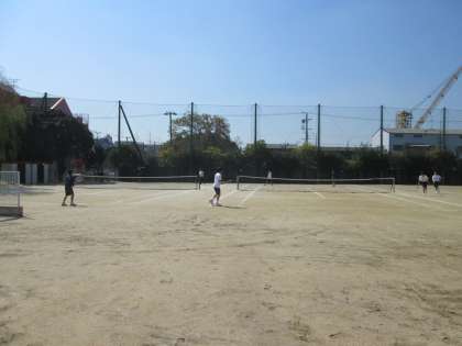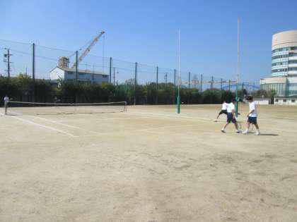 今日は、素晴らしいお天気の中、半袖姿で硬式テニス部が汗を流しています。