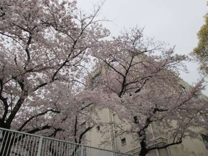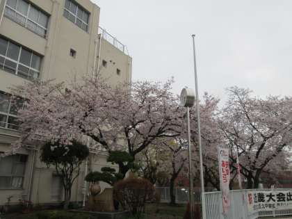 三本の大きな桜の木。まだ、一部に蕾はあるものの、とても豪華です。
