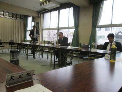 昨日、本年度最初の打ち合わせ会議が本校で開かれ、「北中桜」を間近で眺められる多目的室で話し合いを行いました。