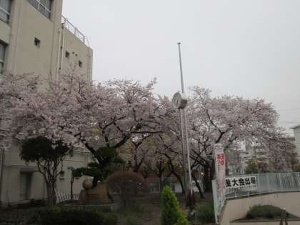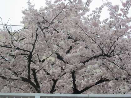残念ながら、お天気は快晴と行かず、青空に映えることはありませんが、満開は満開、見事な美しさ、「ザ、日本の春!」です。