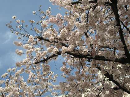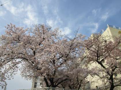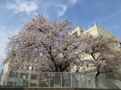 真っ青な青空には、ほど遠いですが、桜が豪華に生えています。