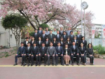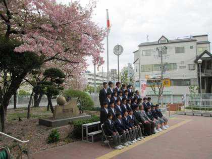 昨年より、桜の開花が遅く、学級写真撮影に花を添えてくれています。