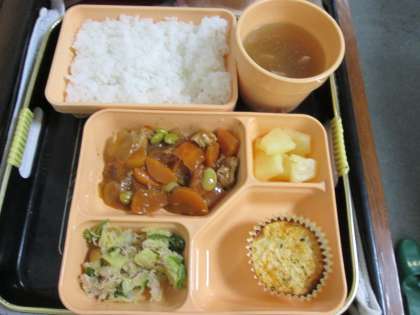 メニューは、「鶏肉のケチャップ煮」「カップグラタン」「ツナとキャベツの炒め物」「野菜たっぷりスープ」、そして「パイナップル」でした。