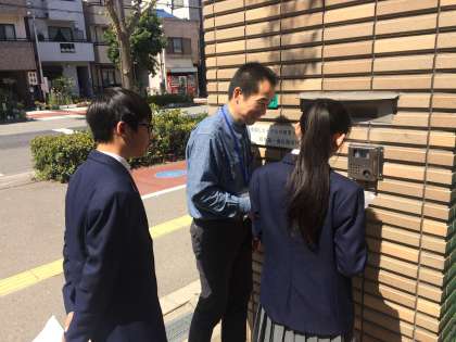 インターホン越しに練習です。しっかりと勉強して下さいね。