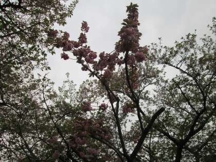 きれいな八重桜も、お天気でこうも変わります。
