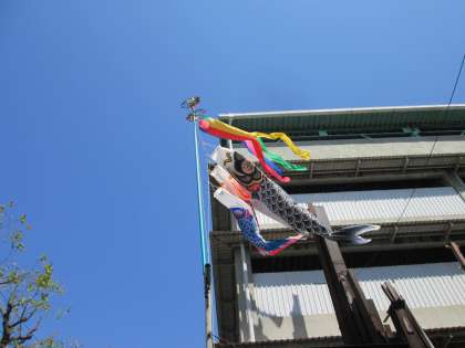 鯉は立身出世の象徴で、五色の吹き流しは、「陰陽五行説」に通じる魔よけの意味があるそうです。