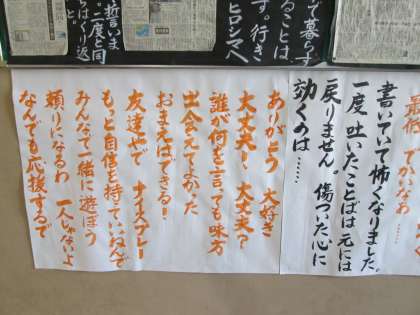全校集会でもお話しましたが、早速3年生で、いじめについての、生徒の意見をまとめてくださいました。