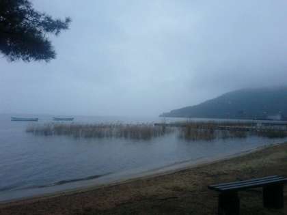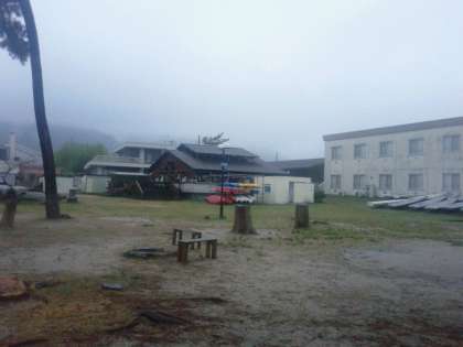朝もやに包まれた宿舎