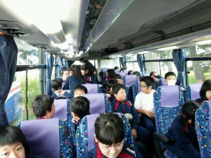 バスに乗り込み、大阪の学校へ向かいます。