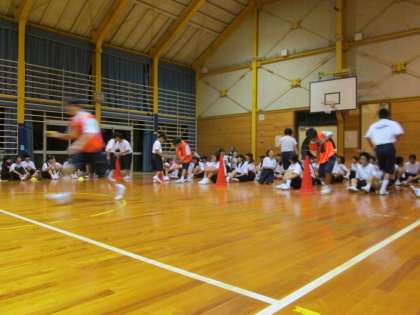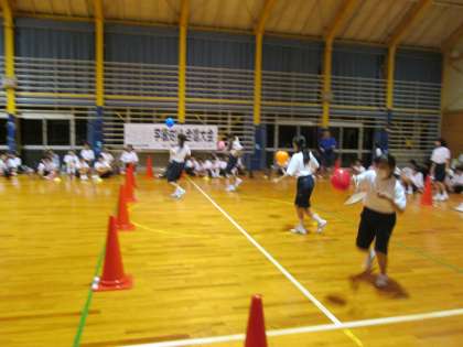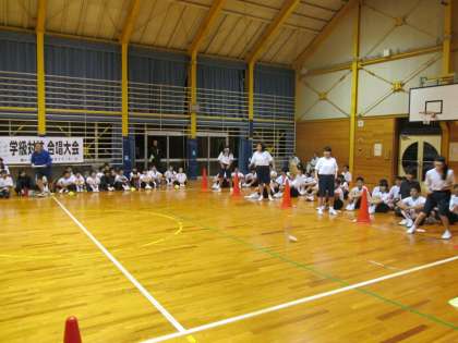 卓球(ピンポン玉レース)、円盤投げ(紙皿飛ばし)、バドミントン(風船リレー)と始まりました。