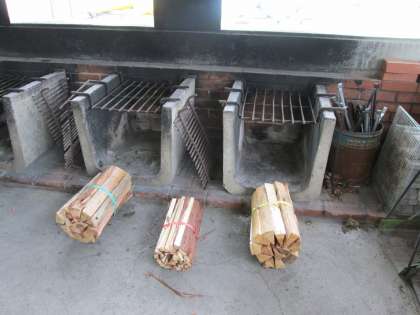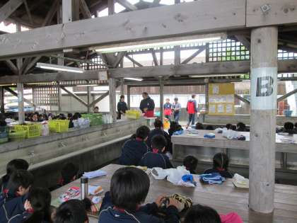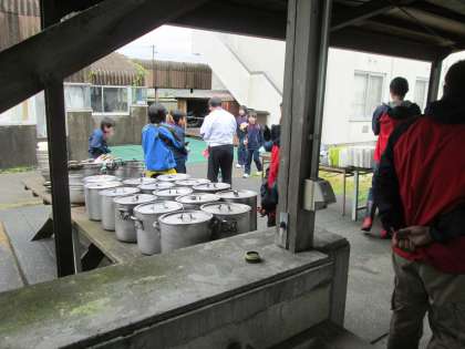屋外の炊飯場で、リーダーからレクチャーをうけます。