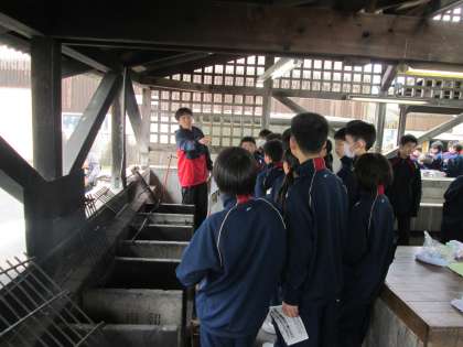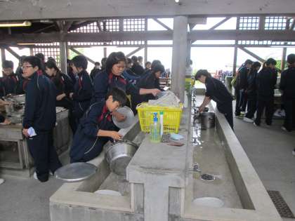 生徒たちは、調理係、材料係、かまど係、食器係に分かれ、作業をすすめていきます。